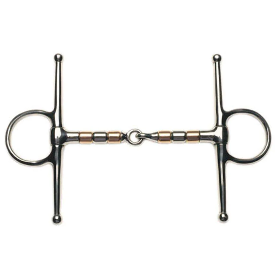 The Korsteel Stainless Steel Copper and Steel Rollers Full Cheek Snaffle Bit is a good example of a roller bit